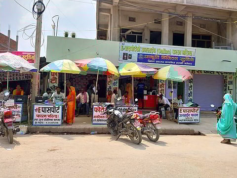 Stalls out the district administration office offering electronic form submission services for the e-passport and National ID. Photo courtesy: Abha Lal.